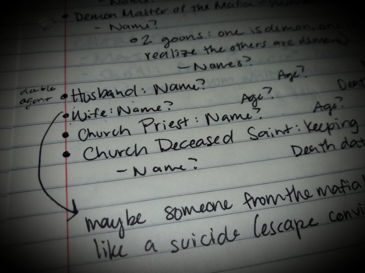 Is “double agent” scribbled in the margin? Oh, yes, it is. This random stroke of genius is still awaiting a first draft.