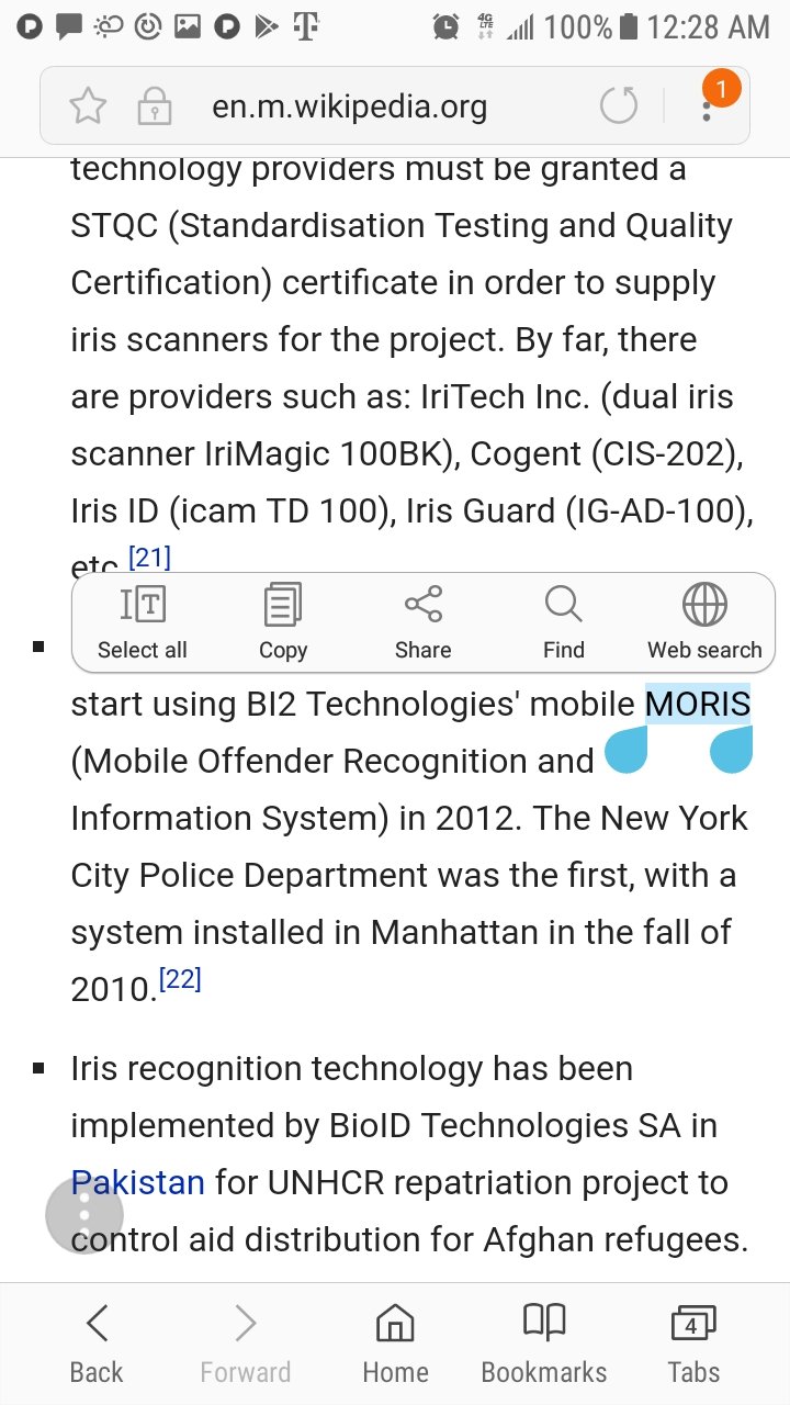 See how I highlighted the acronym I’d been looking for before I took the screenshot? This is Wikipedia’s Iris Recognition page. Wikipedia is a great starting point for research.